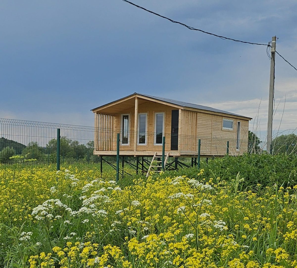- Электрический столб расположен рядом, что свидетельствует о возможности подключения дачного домика 10х5 к электросети.