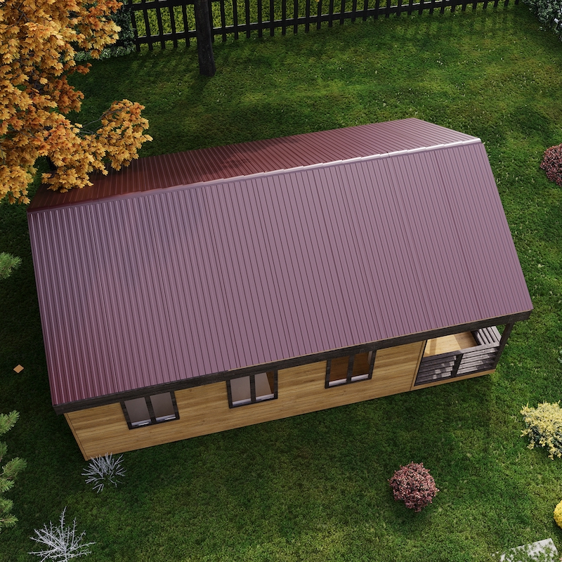 Размер 9х6 позволяет разместить в домике несколько функциональных зон. Здесь можно организовать несколько спален, гостиную с зоной отдыха с диванами и столом для общения, а также уголок для приготовления пищи, санузел. Большие окна обеспечивают естественное освещение, создавая ощущение простора и близости к природе.